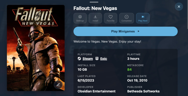 Bring Steam, GOG, and Epic together into one unified and visually rich space.