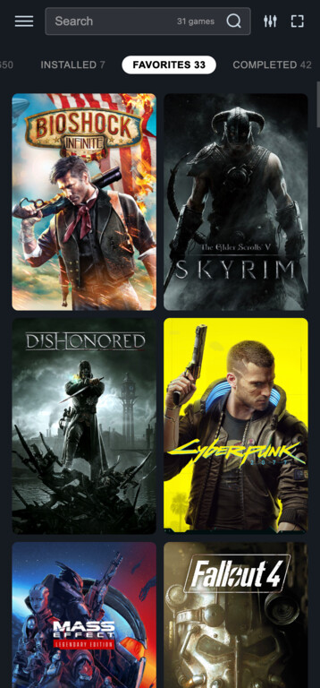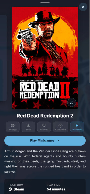 Apply artwork from SteamGridDB, set favorites and create your own lists. Make your library truly yours.